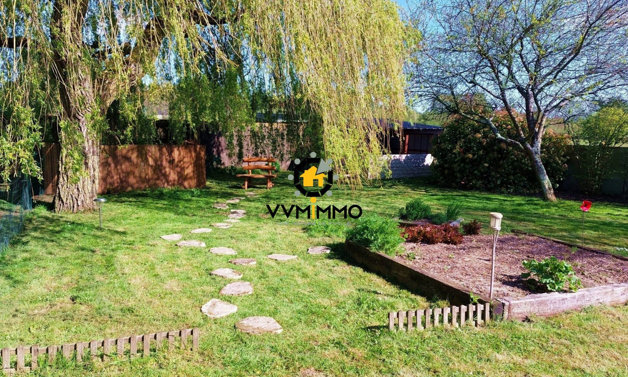 Rénovée avec soin, la maison s’ouvre sur un superbe jardin paysager de 2 200 m², sans vis-à-vis, exposé plein Sud, qui apporte une luminosité exceptionnelle tout au long de la journée. Au rez-de-chaussée, un hall d’entrée avec placard intégré mène vers une cuisine aménagée et équipée avec cellier attenant, puis vers un salon-séjour chaleureux doté d’une cheminée insert. On y trouve également une chambre, une salle d’eau, des toilettes séparées, un grand bureau parfaitement adapté au télétravail ou à une activité indépendante, ainsi qu’une buanderie.